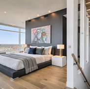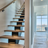Aménagement complet de ce penthouse contemporain où la cuisine, élégante et épurée, devient le cœur de l’espace de vie. Les matériaux contrastés, l’îlot central et la lumière naturelle mettent en valeur la vue spectaculaire et le style urbain du lieu.